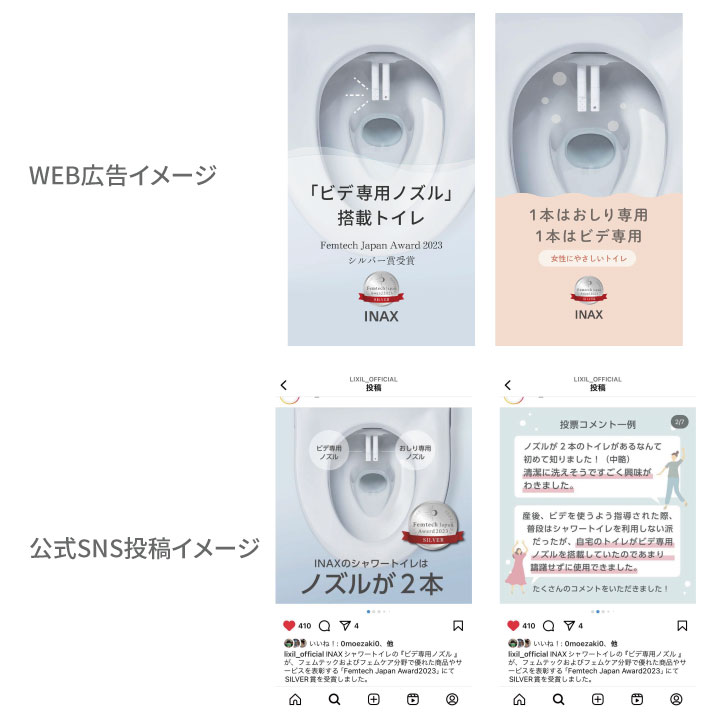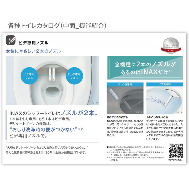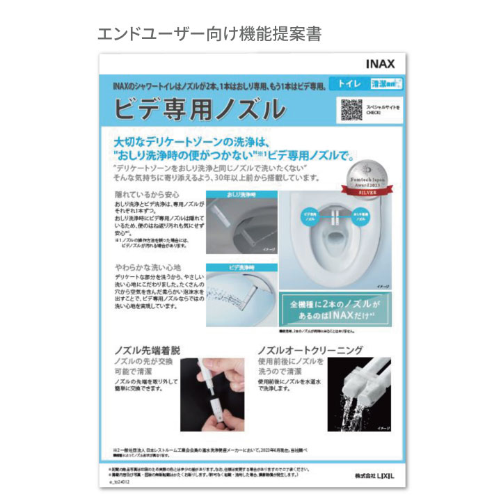 Femtech Japan Award 2023 Silver・2024 Silver 受賞株式会社LIXIL様INAXトイレ シャワートイレ「ビデ専用ノズル」